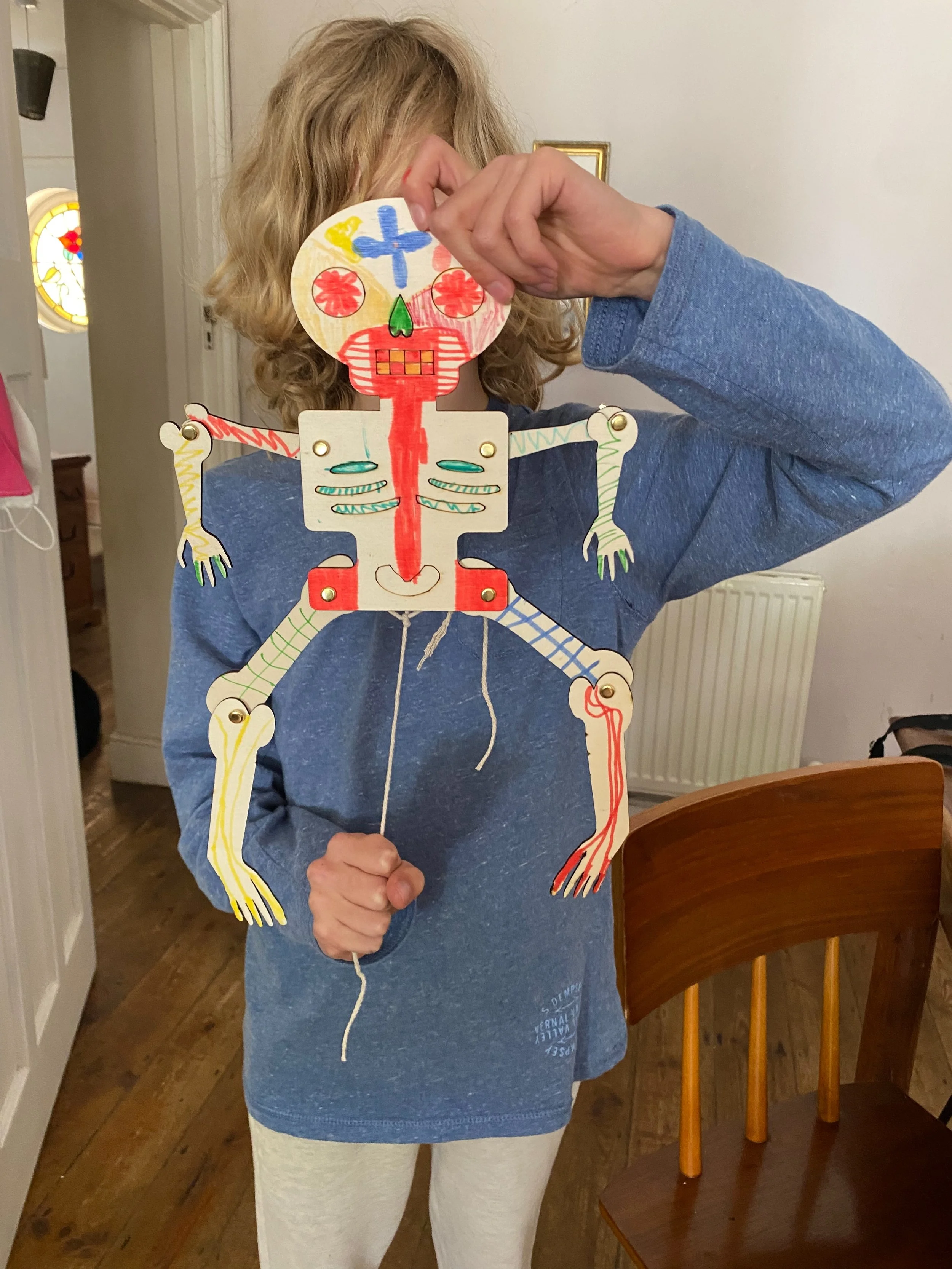 “My son really enjoyed making his skeleton puppet. He was fully engaged exploring his own creative design and building his construction skills. The puppets have a lovely quality to them making them a fantastic gift to take away. We have his puppet proudly displayed at home.”